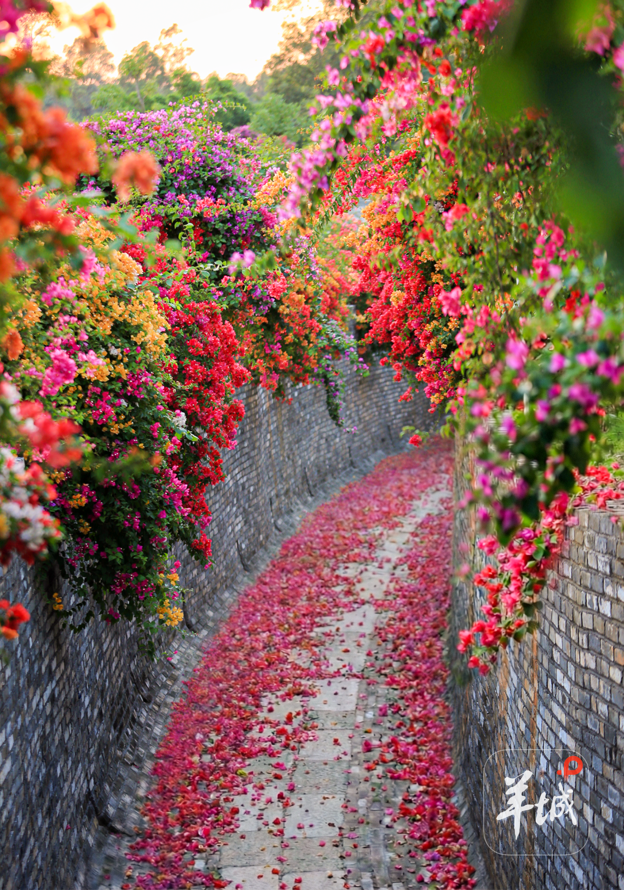 据园区先容,霓裳园在每年10月底至次年4月皆可不雅赏三角梅,此时的园区,三角梅藤蔓如瀑垂落,花墙层叠绽开,满园花色炽烈如霞,视觉后果轰动。