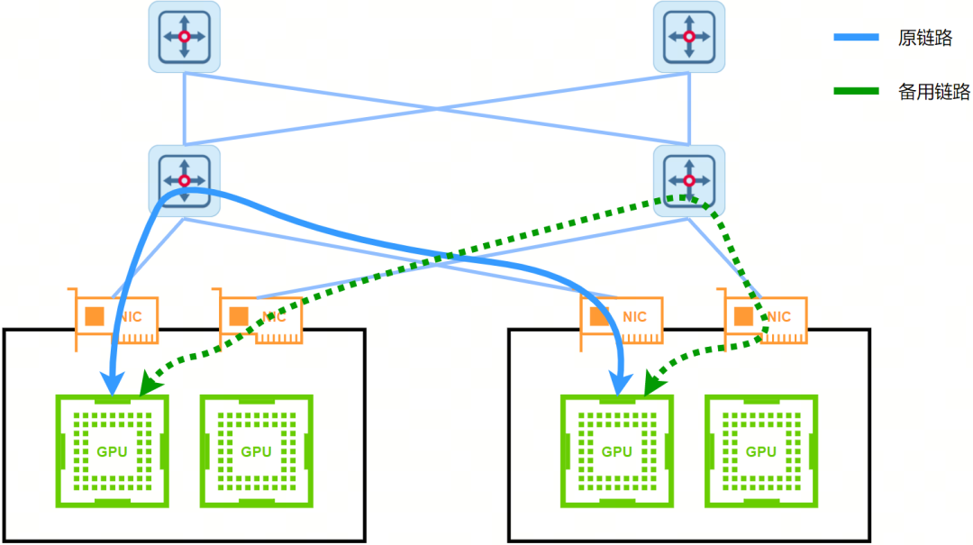 端侧故障逃生决策通过在NCCL加入故障识别以及故障侧目机制,并在创建数据链路时同步创建备份链路来处意义于硬件故障导致单条链路无法通讯的问题。