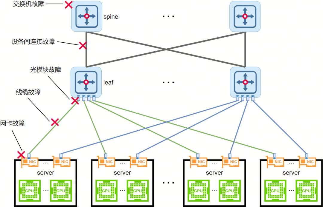 把柄Meta团队磨砺Llama3.1的阐发,在磨砺时间平均每三个小时就会发生一次故障,其中约8.4%的故障是由网罗开拓故障导致的。不同于其他由软件激勉的故障,网罗开拓故障大多为硬件故障,举例网罗线缆或是网卡光模块等硬件开拓出现故障。相较于软件故障,硬件故障的处理难度大、规复时间长,可能形成更大的算力弃世。