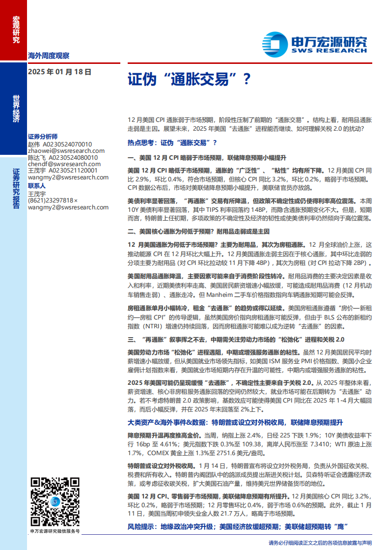 ]article_adlist-->选录 ]article_adlist-->12月好意思国CPI通胀弱于阛阓预期,阶段性压制了前期的“通胀交往”。结构上看,耐用品通胀走弱是主因。推断翌日,2025年好意思国“去通胀”程度能否连续、若何长入关税2.0的扰动?