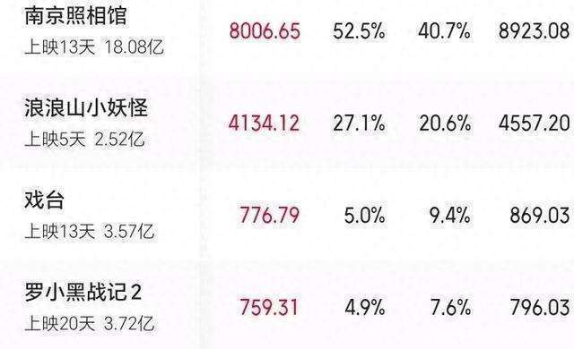 猫眼的数据清澄澈楚地显现:暑期档总票房早就大要71亿元了。你《戏台》上映才两周,支配的《南京影相馆》一天一个亿,动画片也靠学生群体猛吸票房。《戏台》连进门的契机都变窄了。