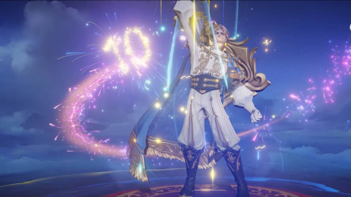 而且官方为了10周年,也如实是精心的,这款皮肤在出场动作中可以看到使用了五彩斑斓的殊效,况兼在出场殊效的终末可以看到一个10字,这是代表着王者荣耀10周年典礼的道理,而且这款皮肤的殊效看上去即是很喜庆,如实有一种庆祝周年庆的风姿。