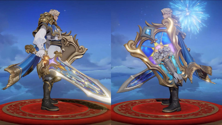 这款皮肤的制作如实相配的概述,咱们可以看一下这款皮肤的剑和盾,相配顺眼,诚然是一款勇者皮肤,但合座的作念工并不会很粗陋。