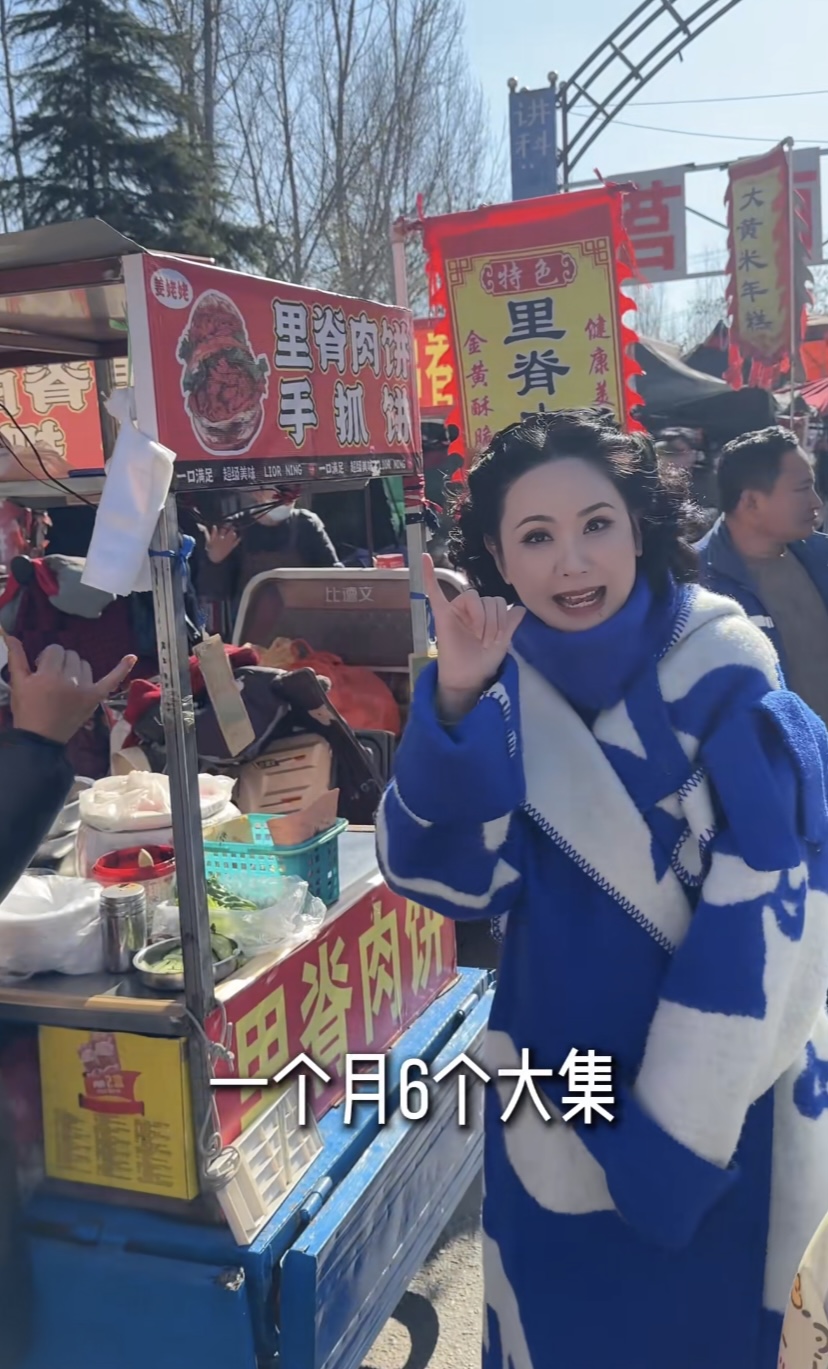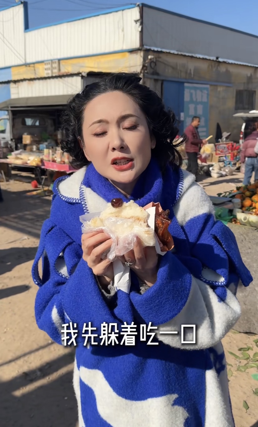 农村大集上的小吃,也都是烈烈轰轰的。程莉莎格外接地气,站在寒风里吃着肉夹馍,手里还拿着一个奥尔良鸡翅。