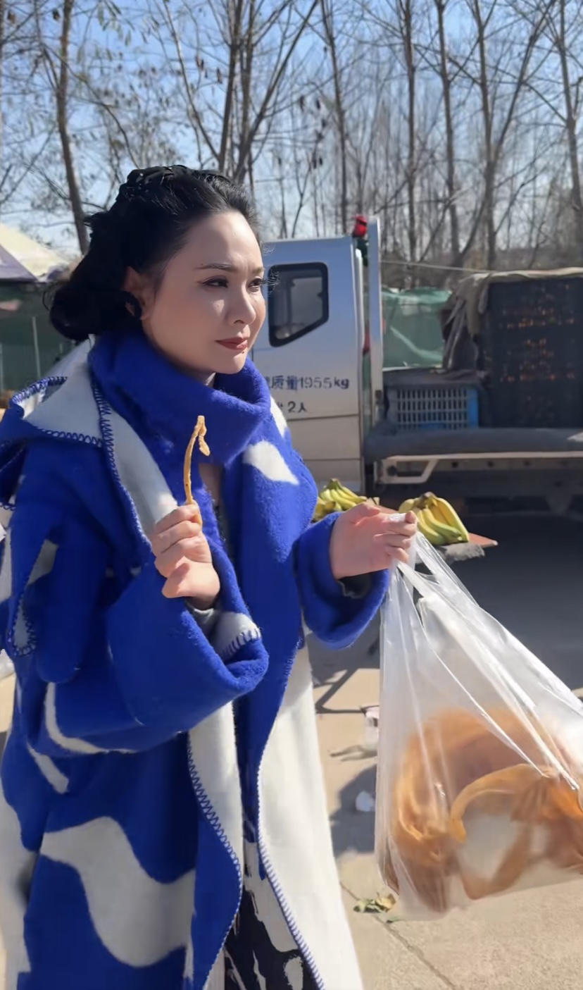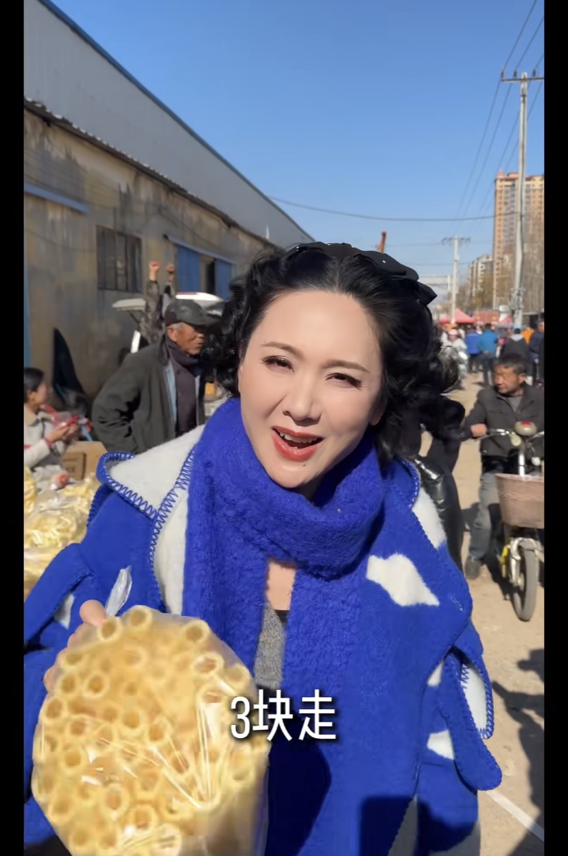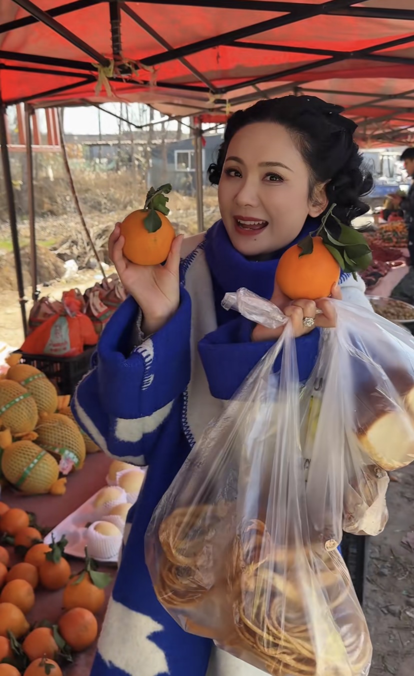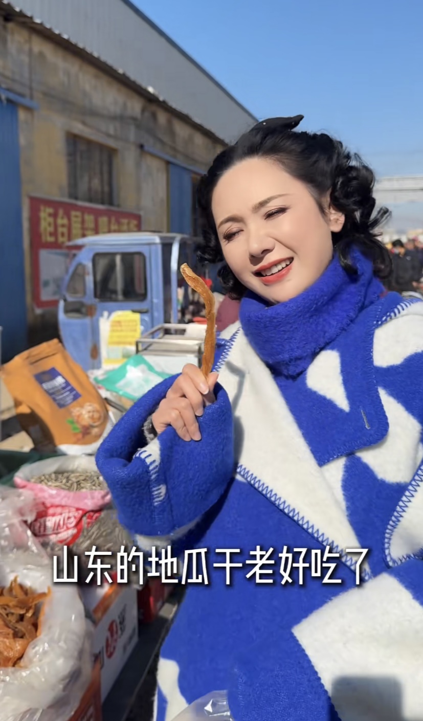 农村大集,真的格外有人烟气。程莉莎走在卖干果的摊贩前,顺手提起地瓜干就尝了一口。她说山东的地瓜干老厚味了,不愧是山东媳妇、对山东的一切都是那么爱重。