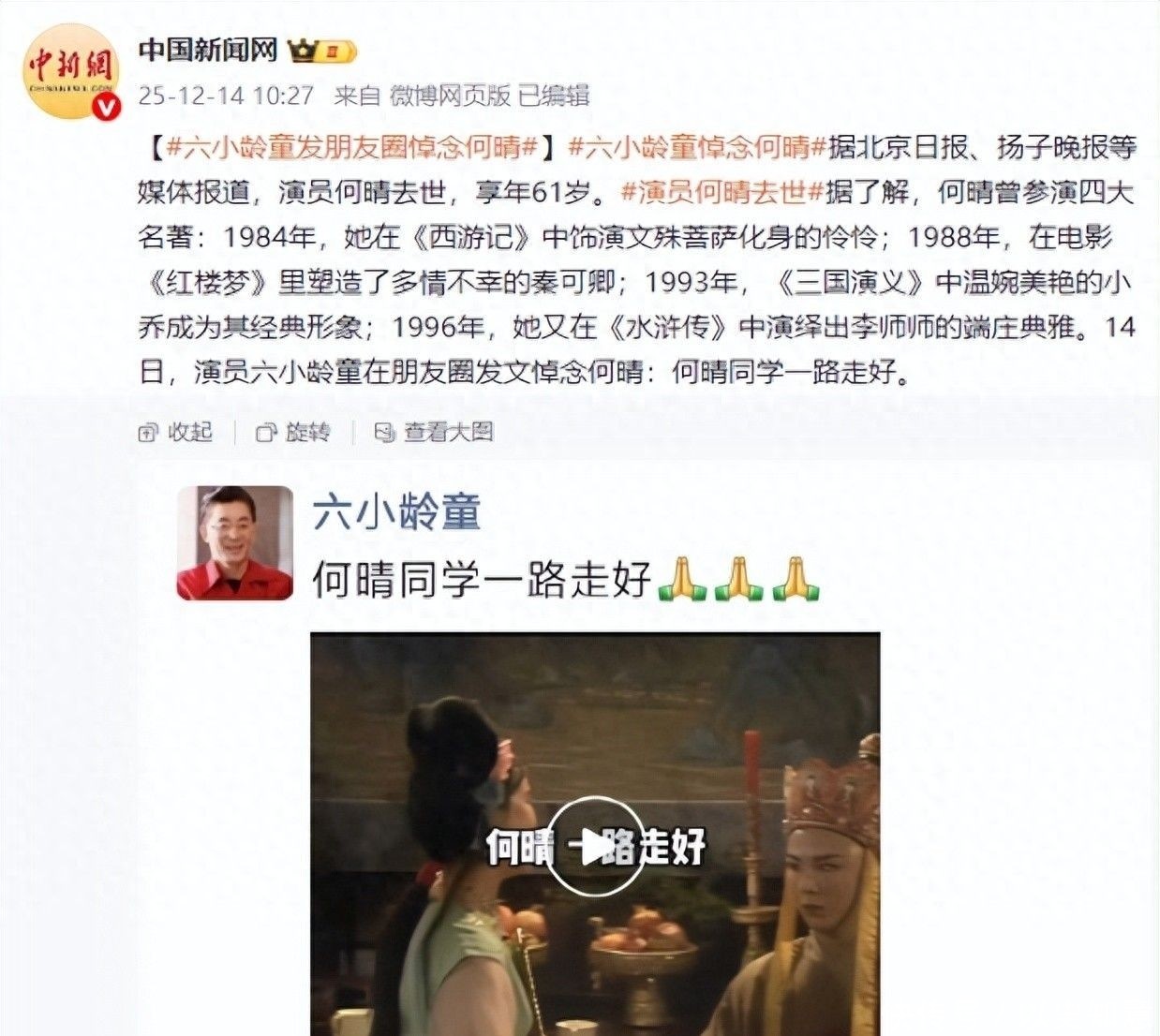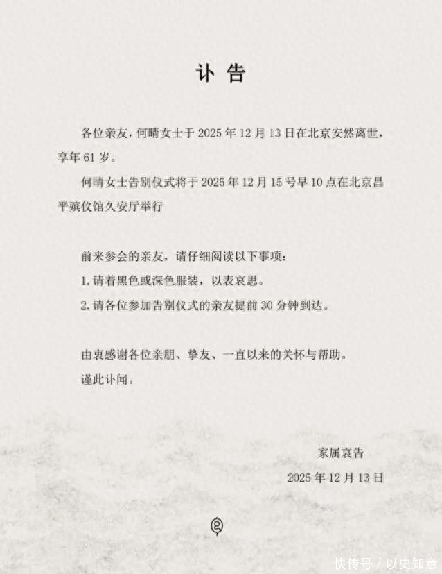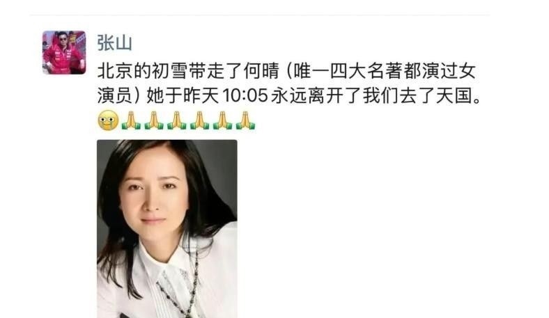 10. “北京这场初雪,带走了何晴。她于昨日10:05弥隔离开了咱们,飞向了另一个寰宇。”