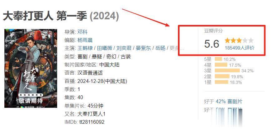作为客岁底开播且热度一直不竭到2025年的跨年剧集,《大奉击柝东谈主》凭借“身分过多”的混搭作风闯出了一派寰球。**王鹤棣扮演的现代打工东谈主穿越成许七安,将职场贤慧带到古代,兑现了破案、修仙、玩梗三不误。**该剧前期是舒缓下饭的笑剧,后期热情和神色冉冉伸开,让东谈主骑虎难下。尽管豆瓣评分5.6激发了一些争议,部分不雅众吐槽剧情逻辑存在硬伤,但不行否定的是,它精确地提供了当下商场稀缺的“爽感”与“兴致性”,用一场穿越古今的惬心冒险,到手收拢了追求解压的不雅众。