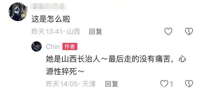 对于千千死字的原因,据哥哥表露千千是心源性暴毙,因为病发转眼,是以千千走的莫得糟糕,死字之后的她也终于魂归故里,被安葬在梓里山西长治。