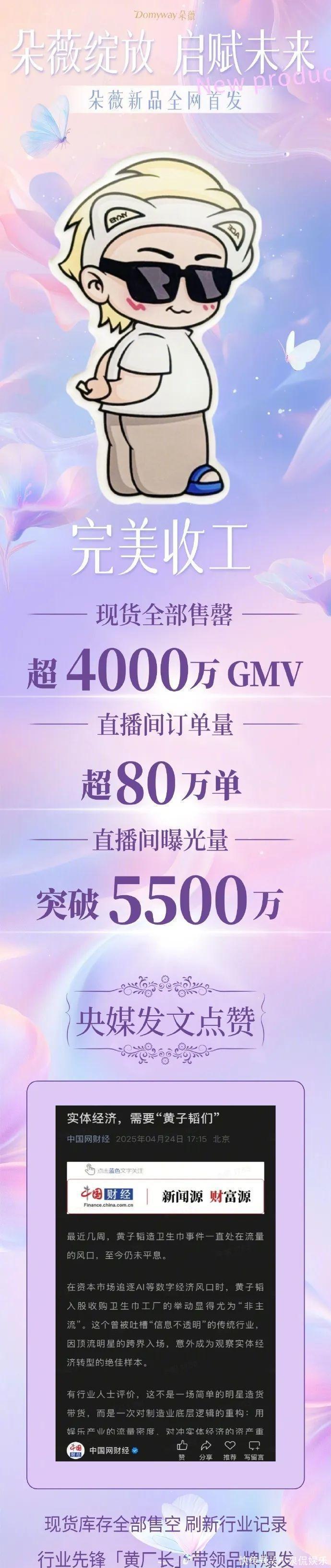 5月18日14点,男星黄子韬卫生巾发布会首销直播开启,线下场所在浙江东阳召开,发布会主落款称为“启赋将来”。 黄子韬示意:“这是我东谈主生特地首要的升沉点。但愿以后当各人提到这个品牌的时辰赌钱赚钱app,各人念念到的是企业家黄子韬,而不是明星黄子韬 。” 据悉,朵薇工场当今设有3条全自动分娩线,每条分娩线每分钟分娩1200片卫生巾。启用传统+AI系统双系统谬误检测,废品率为2%。据了解,朵薇分娩线24小时及时监控,居品包装后附有溯源二维码。该居品策划达到医护级要领,比庸碌国标多17项加严测试,国标真菌菌落总和条件小于100,黄子韬的卫生巾不错作念到菌落总和为0。 本年“3·15”晚会上,央视曝光了卫生巾、纸尿裤、一次性内裤等卫生用品的分娩乱象。随后,黄子韬在直播中称“那些赚卫生巾黑心钱的东谈主确切太恶心了”,披露念念作念透明化卫生巾工场,话题#黄子韬晓喻将作念卫生巾#登上微博热搜榜第一。 (大师新闻记者 吕晗)